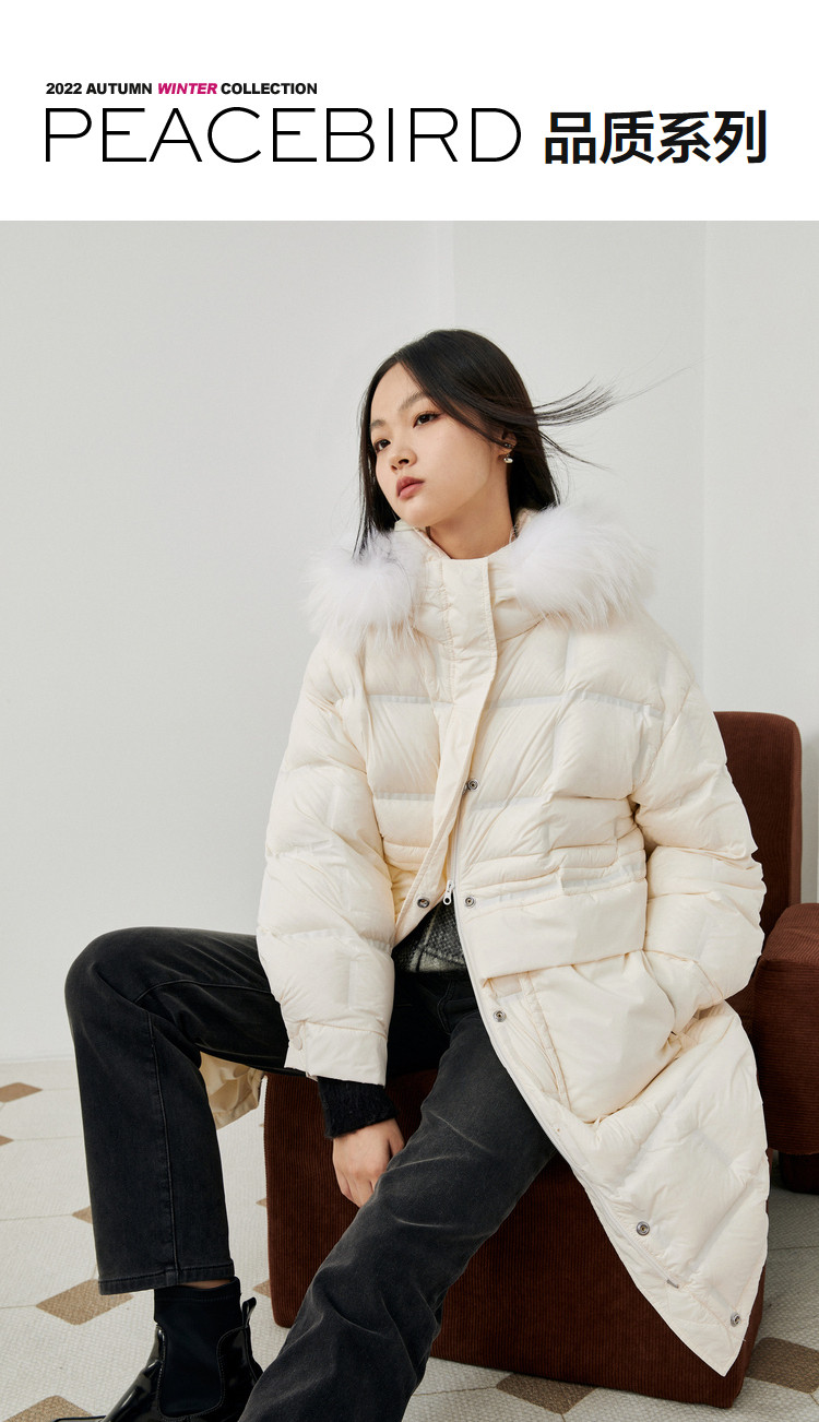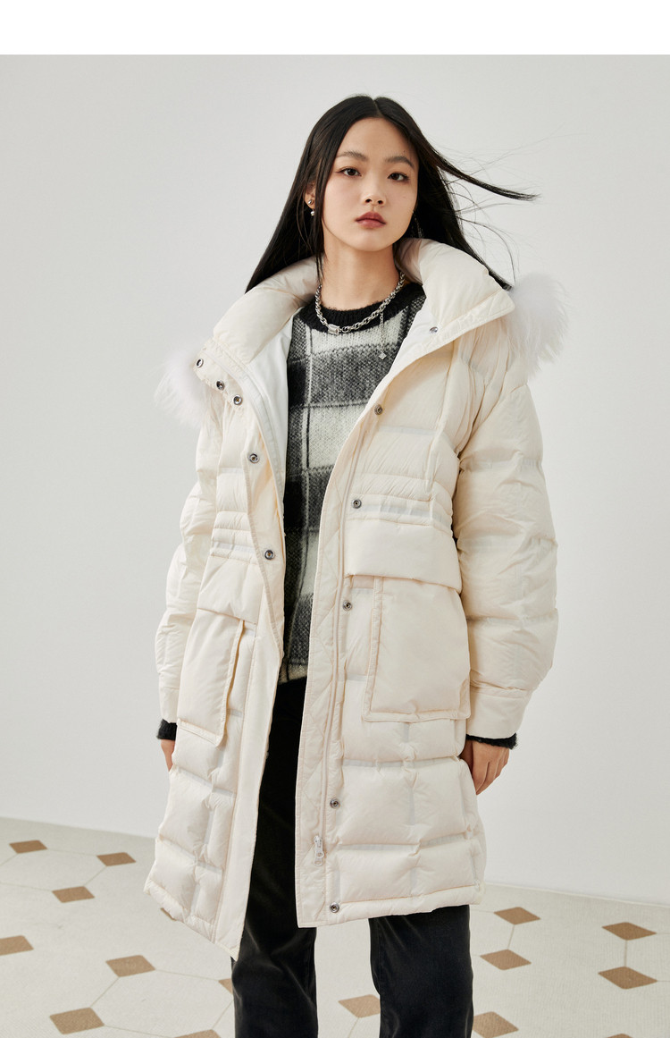 气质长款毛领羽绒服女冬季格型绗缝羽绒服女