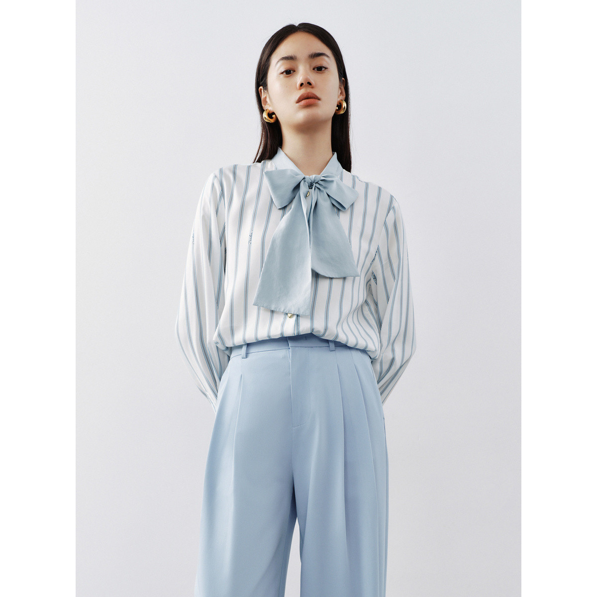 莱赛尔系带长袖衬衫女2023秋装新款法式复古高级感上衣女