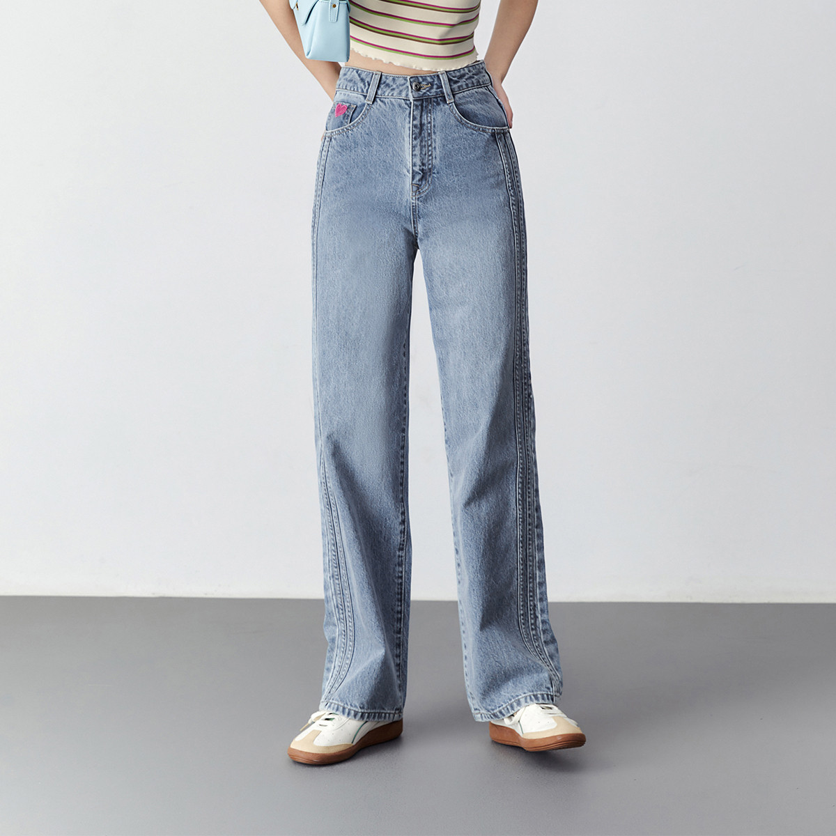 高腰阔腿牛仔裤女2023春夏新款宽松复古窄版直筒牛仔裤